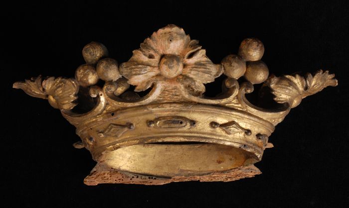 Gesneden houten vergulde kroon, afgebroken van wapen...