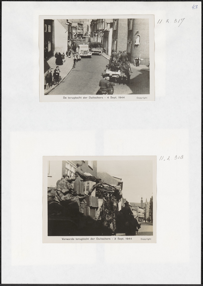 Foto van terugtrekkende Duitse voertuigen in Nederla...