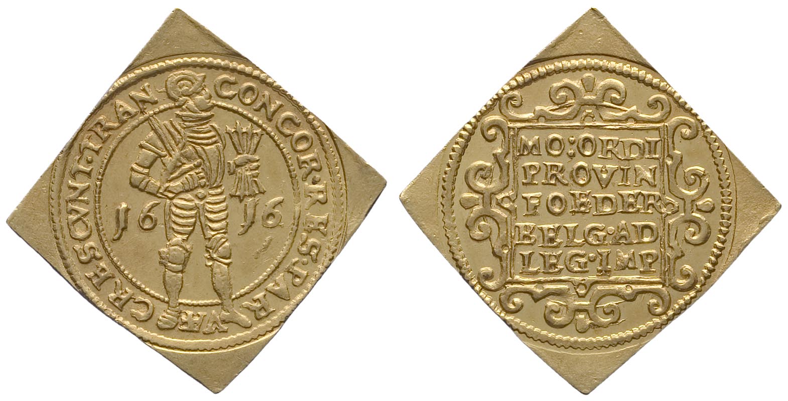 1616, gouden dukaat, vierkant en dubbele afslag pied...