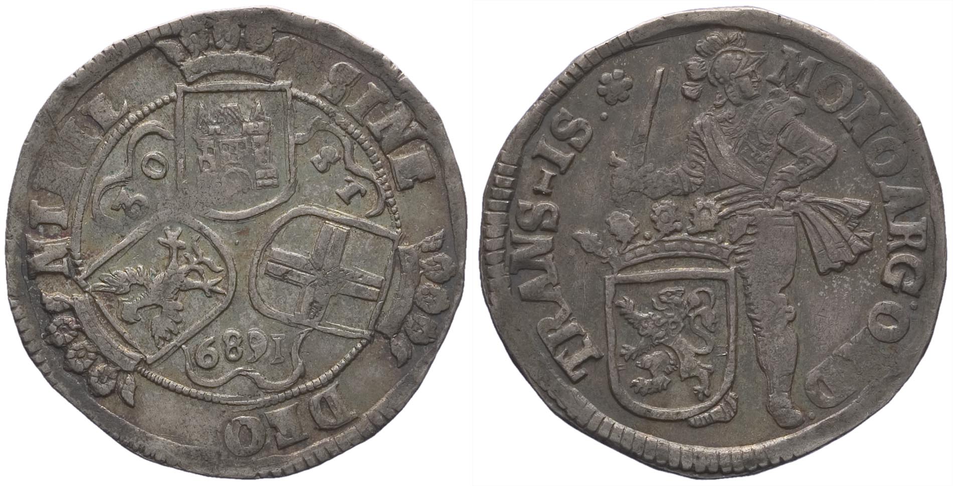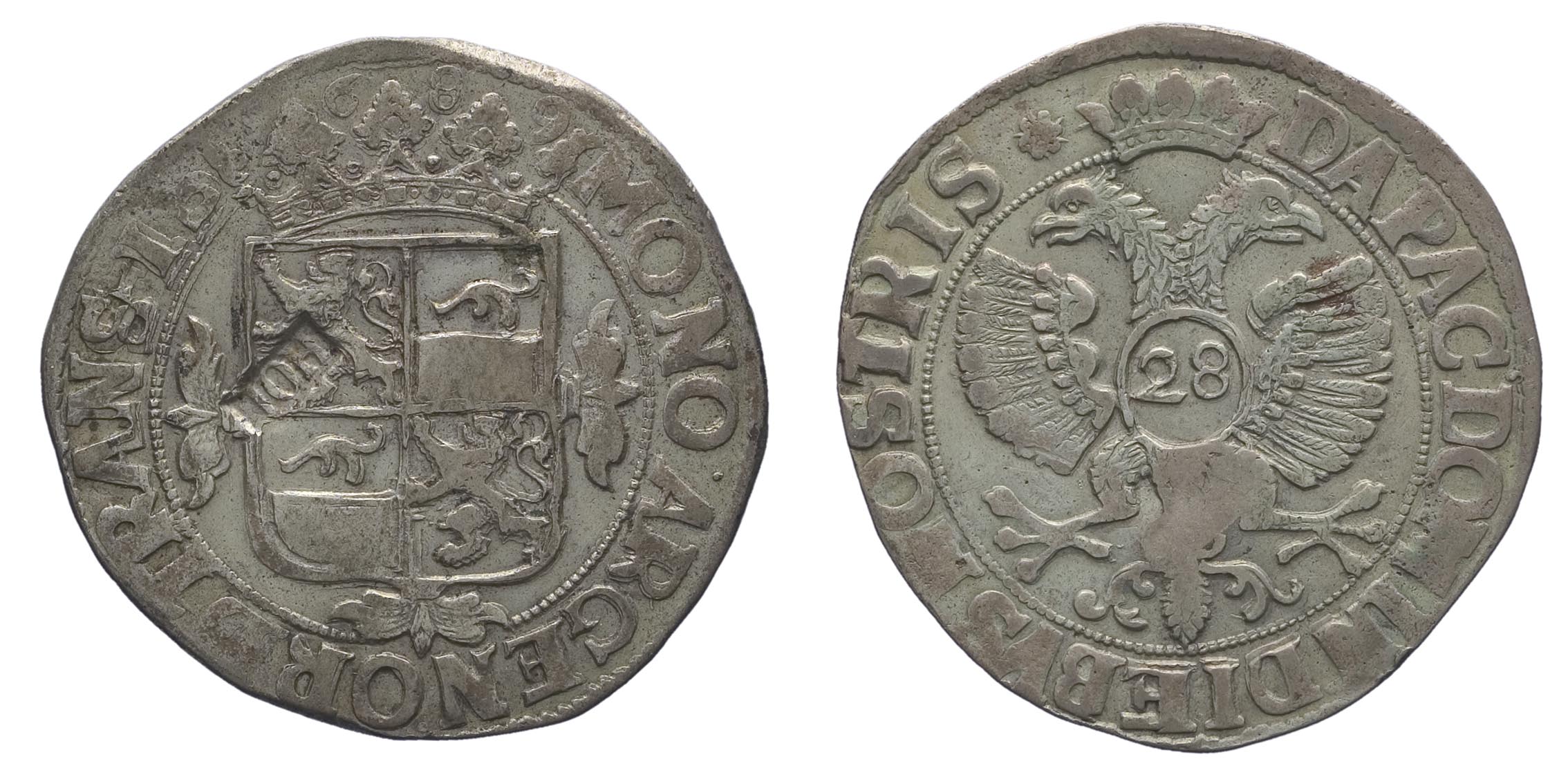 1689, florijn of 28-stuiverstuk met hol geklopt