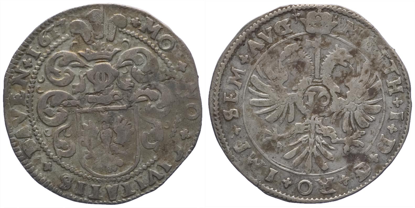1676, zilveren rijder of dukaton afwijkend van