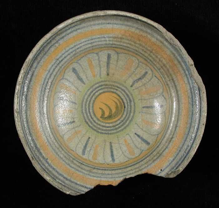 Fragment majolica kom, polychroom, in het midden één...