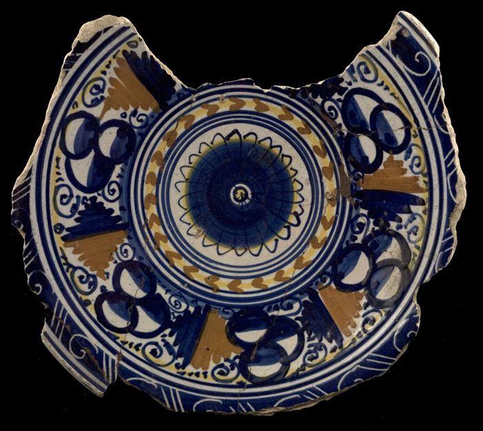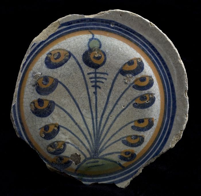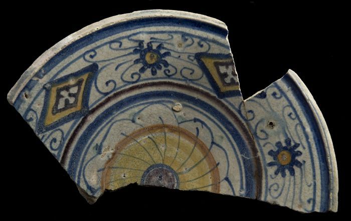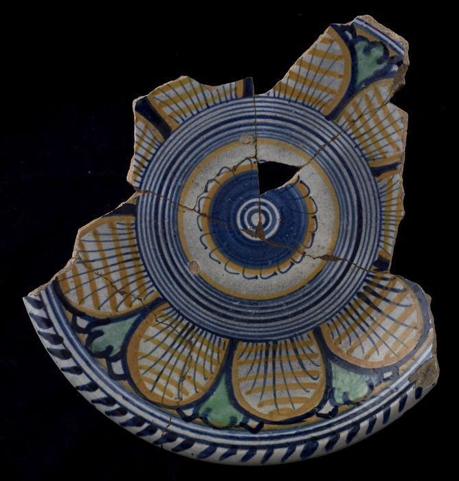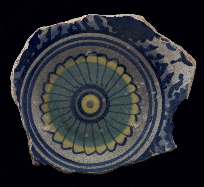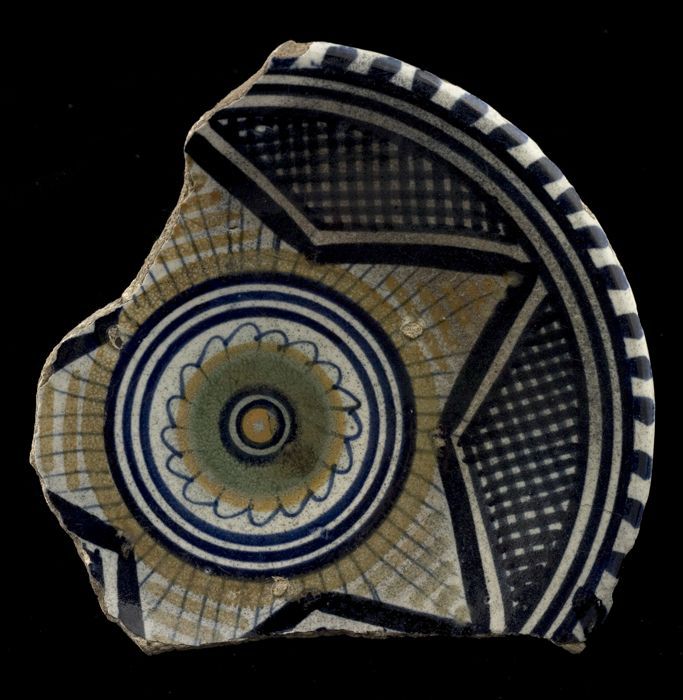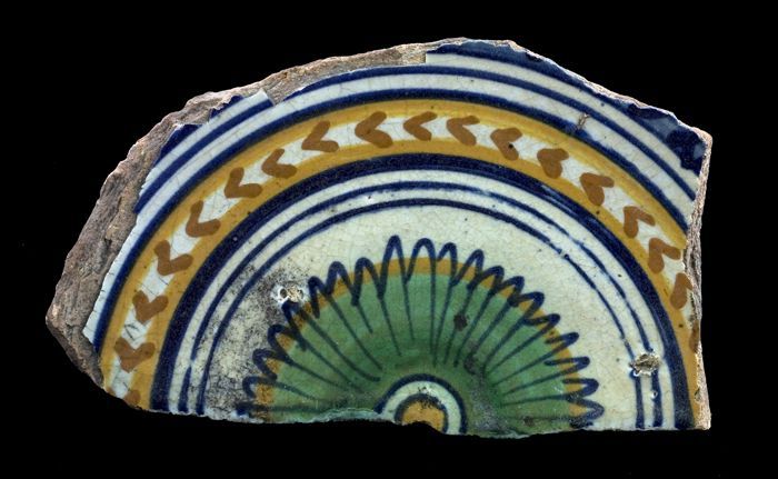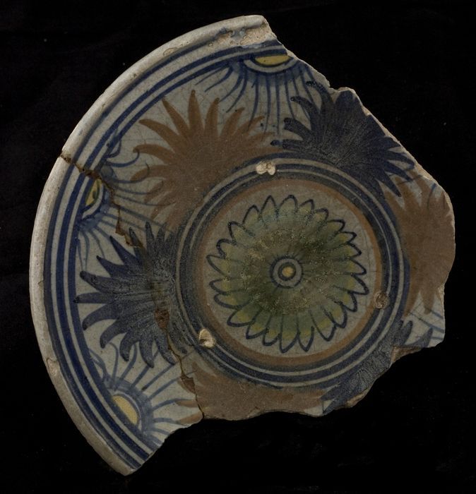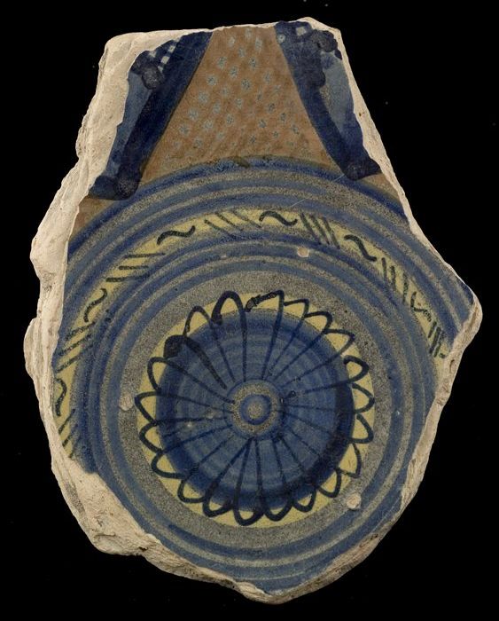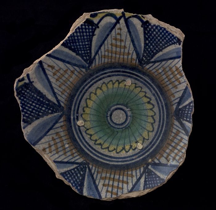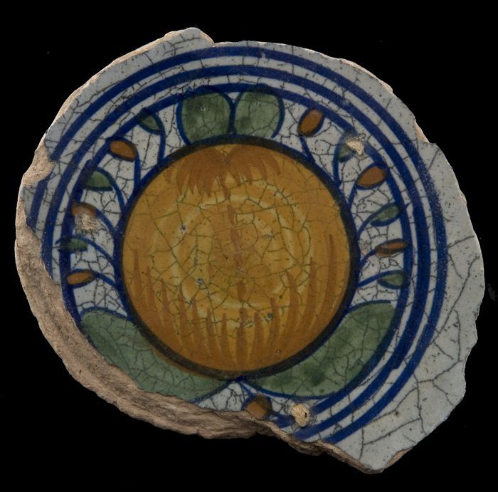 Fragment majolica schotel, polychroom, rozet en ster...