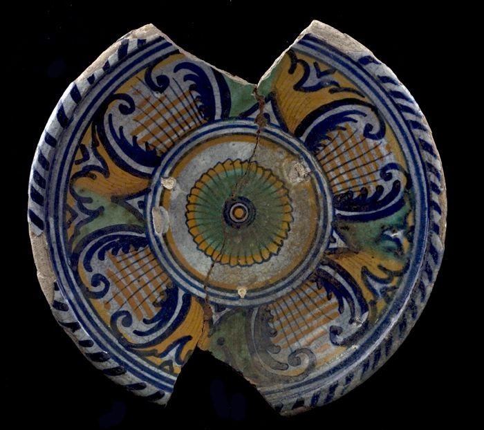 Fragment majolica schotel, polychroom, rozet in het ...