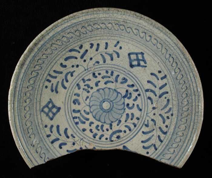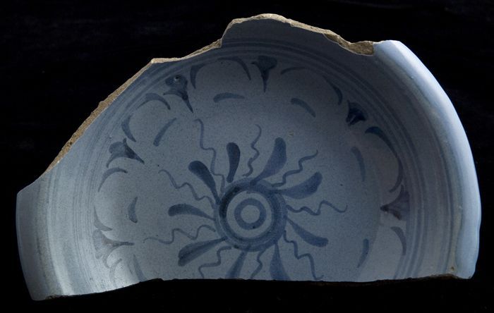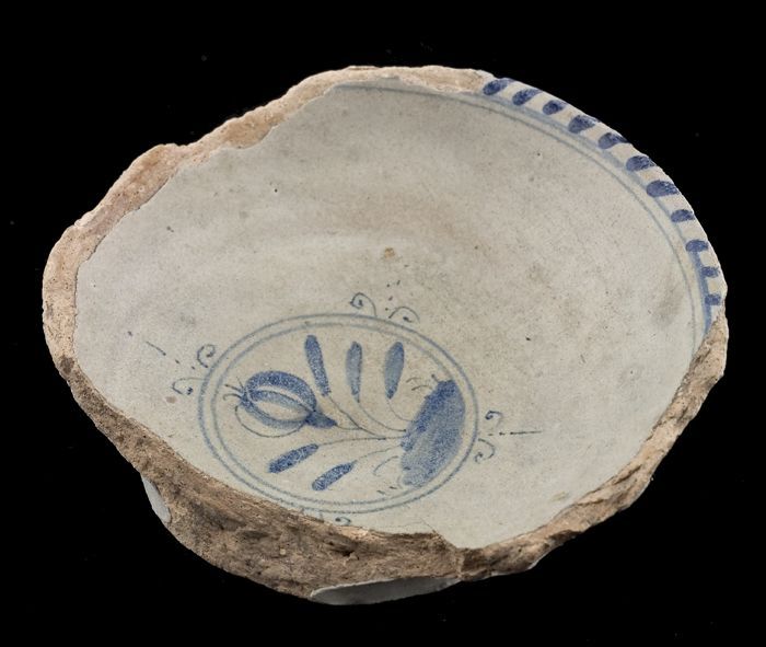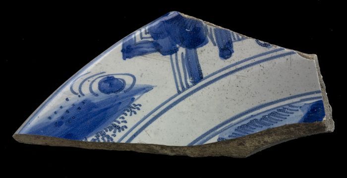Fragment majolica schotel, blauw op wit, eenvoudige ...