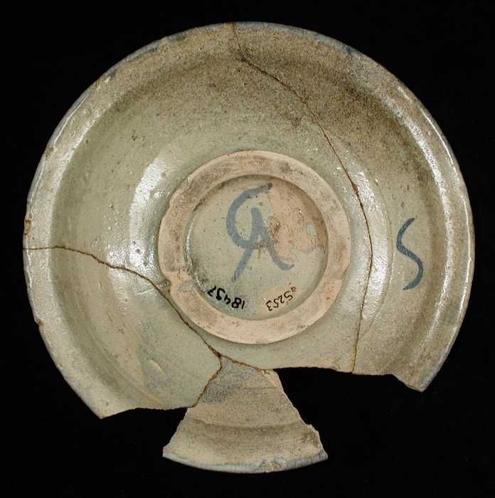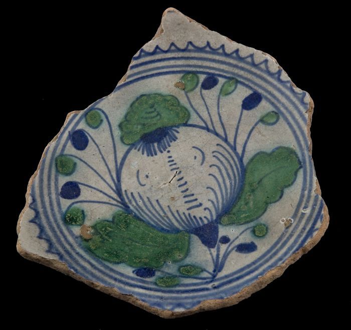 Fragment majolica kom, groen en blauw op wit, decor ...