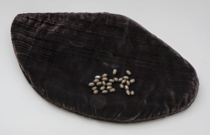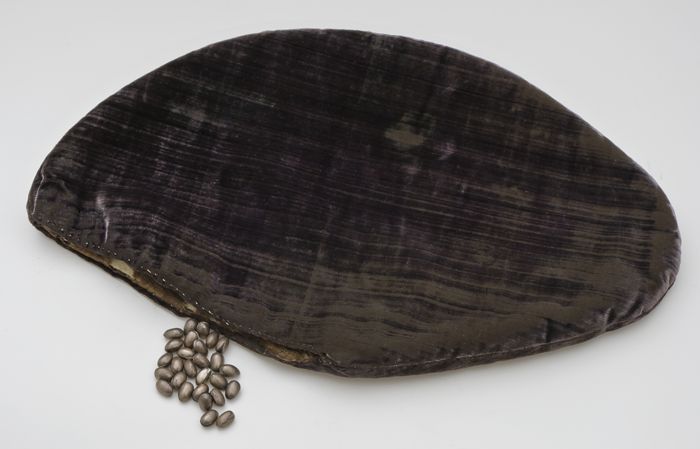 Stembonenzak van zwart fluweel, kussen in de vorm va...