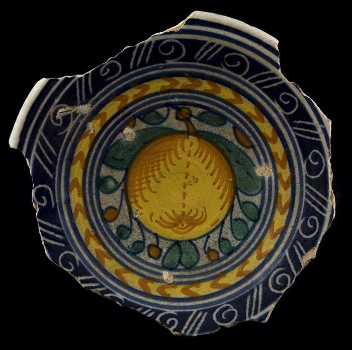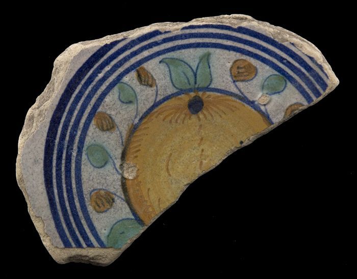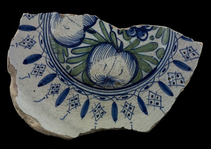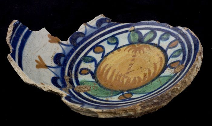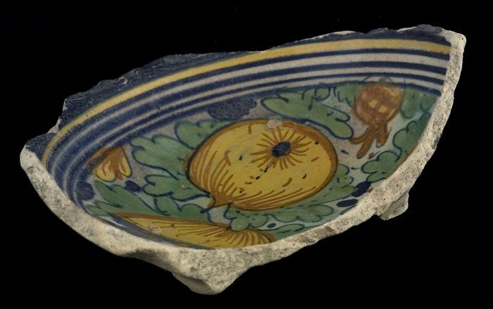 Fragment majolica schotel, polychroom, granaatappel ...