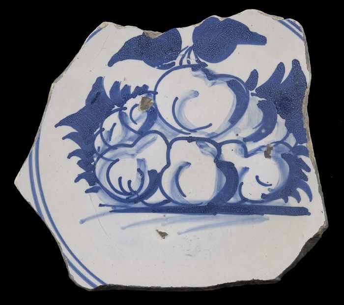 Fragment majolica schotel, blauw op wit, met appels ...