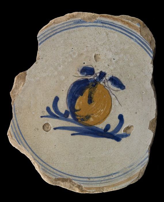 Fragment majolica schotel, blauw op wit, met appels,...