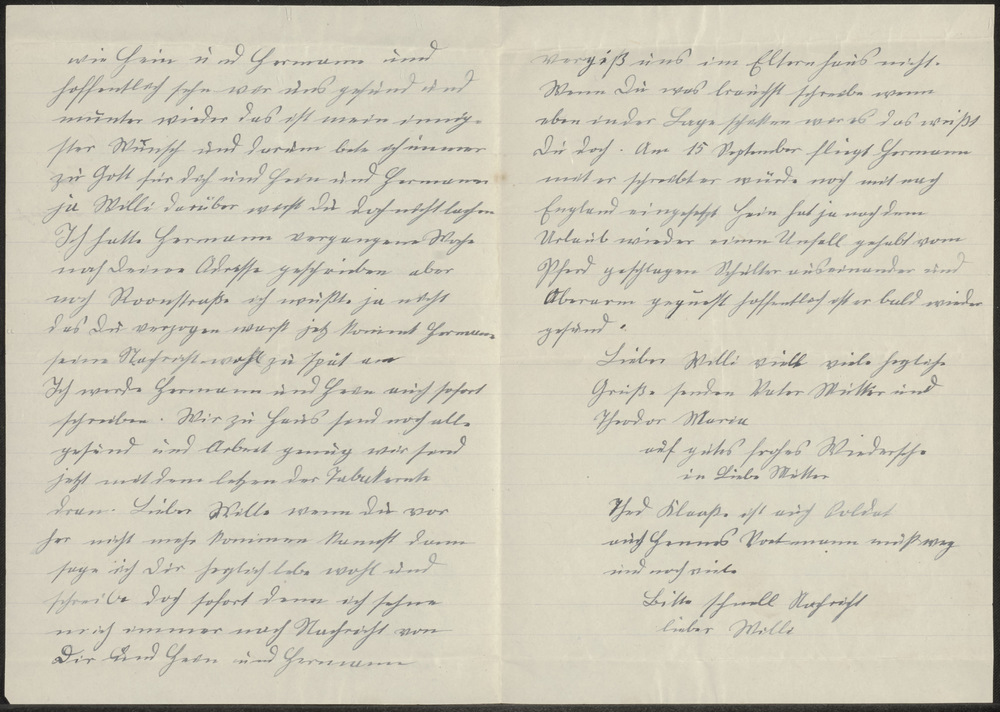 Brief uit Alt-Kalkar 27.8. '40 aan Lieber Willi