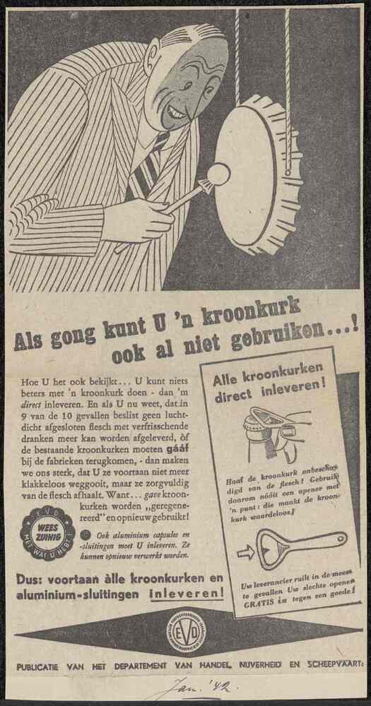 Vel met opgeplakte advertentie: "Als gong kunt u 'n ...