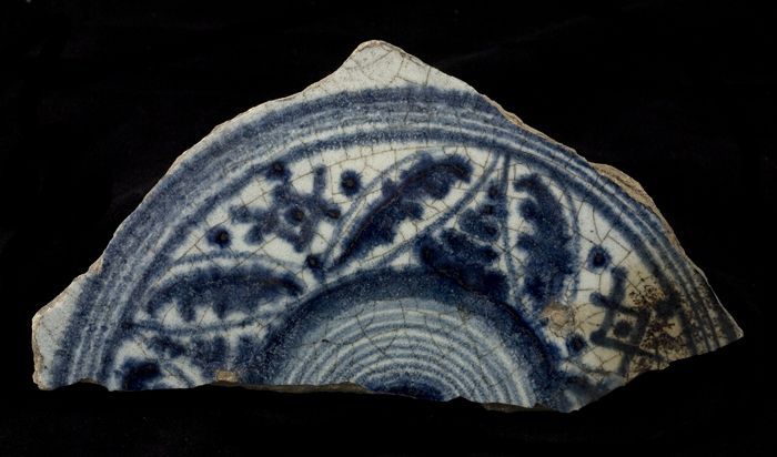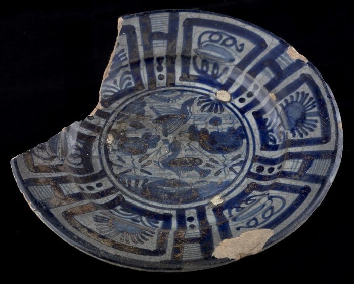 Fragment majolica bord, blauw op wit, Chinees geïnsp...