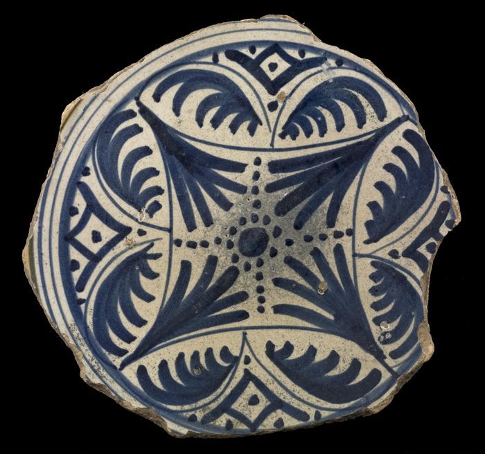 Fragment majolica schotel, blauw op wit, achtpuntige...
