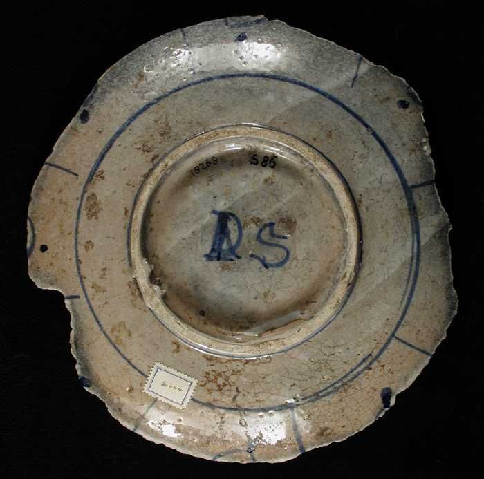 Fragment majolica bord, blauw op wit, in het midden ...