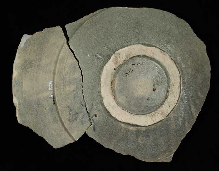 Fragment majolica schotel, blauw op wit, op de spieg...