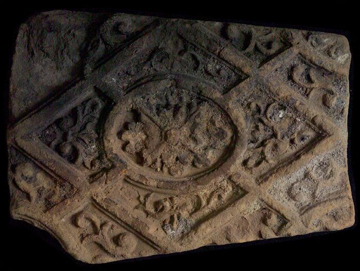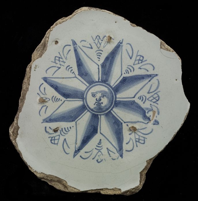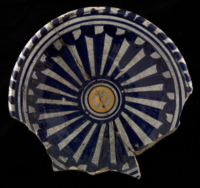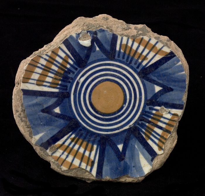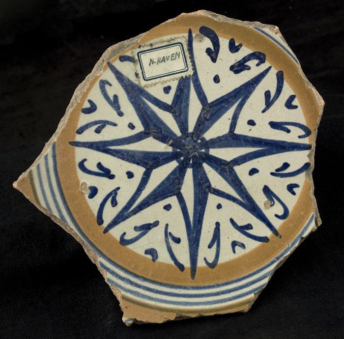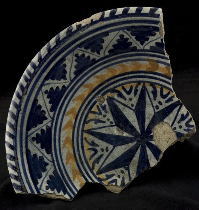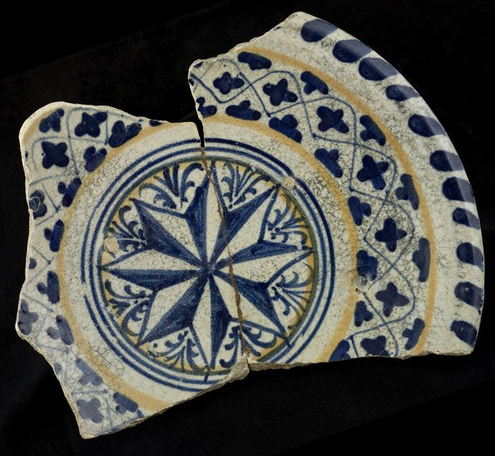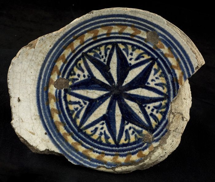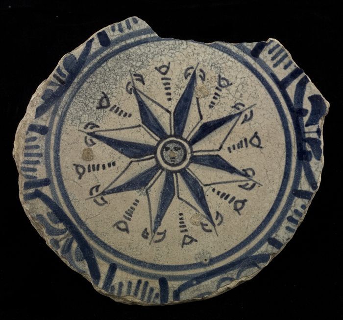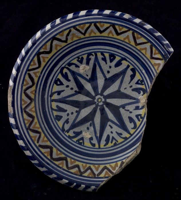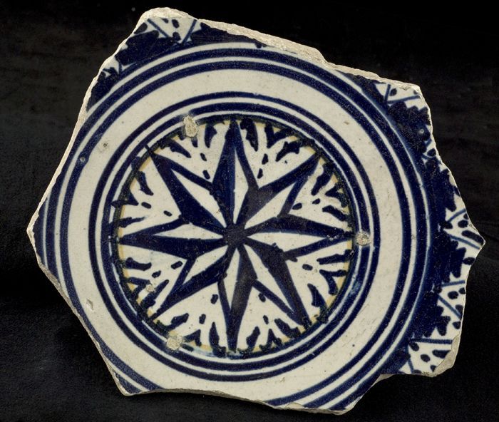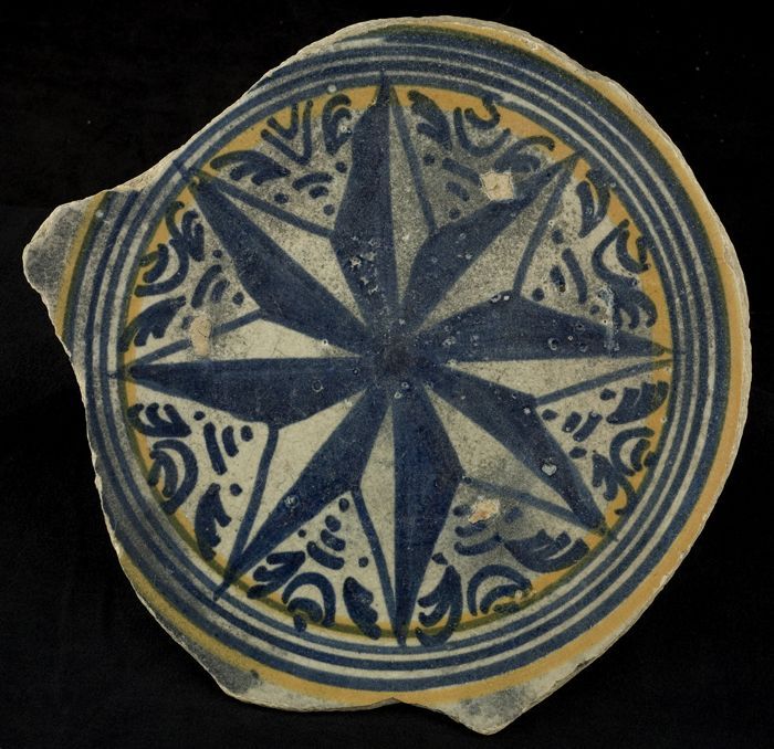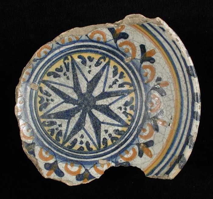 Fragment majolica schotel, in het midden een achtpun...