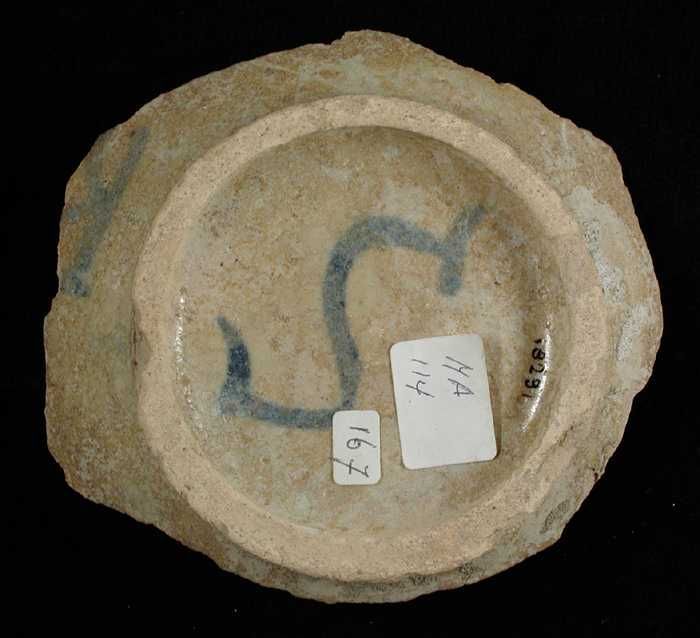 Fragment majolica kom, blauw op wit, polychroom, in ...