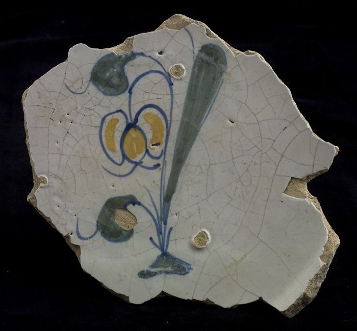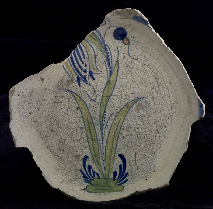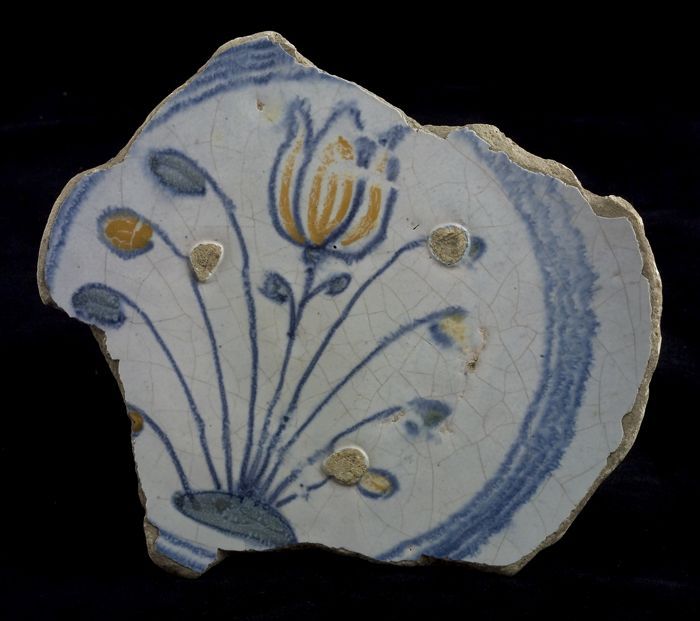 Fragment majolica schotel, polychroom, tulp of sneeu...