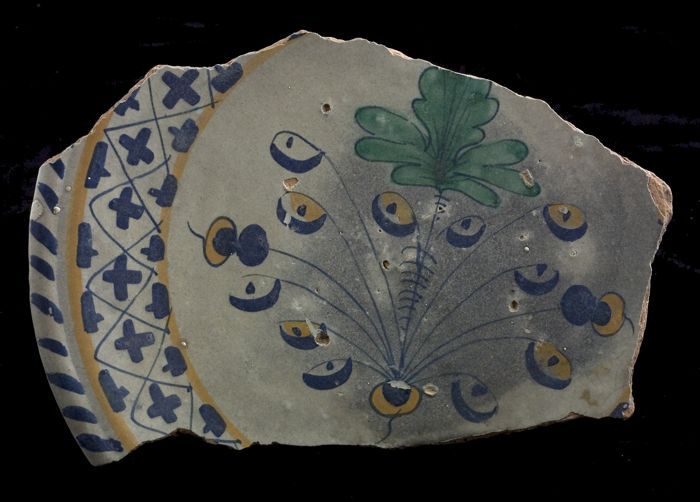 Fragment majolica schotel, polychroom, vierbladige b...