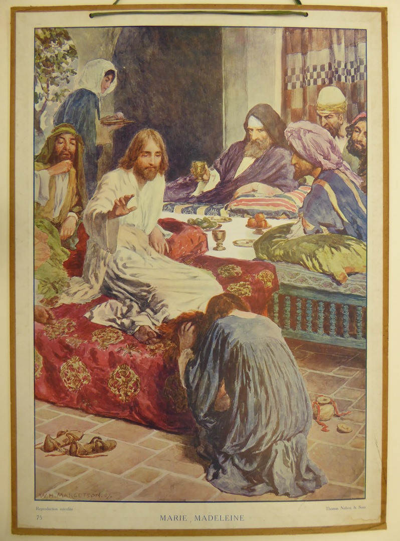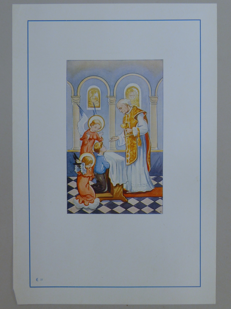 Communieprent met Maria met kind dat hostie ophoudt,...