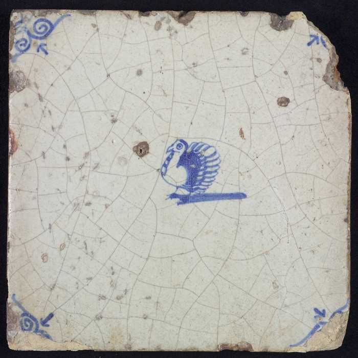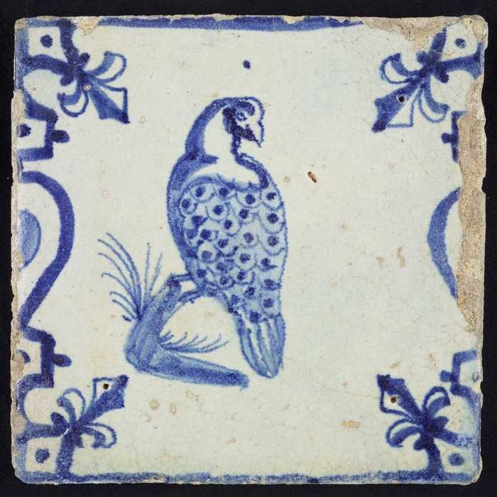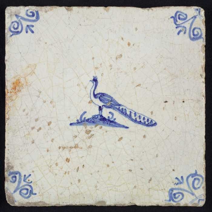 Dierentegel, vogel pauw, hoekmotief ossenkop