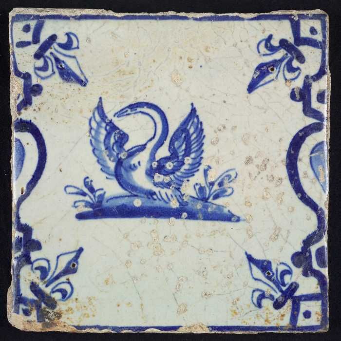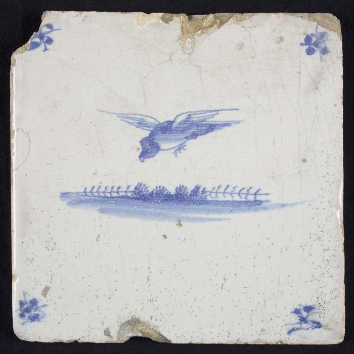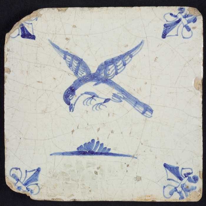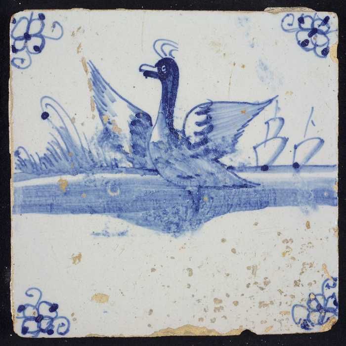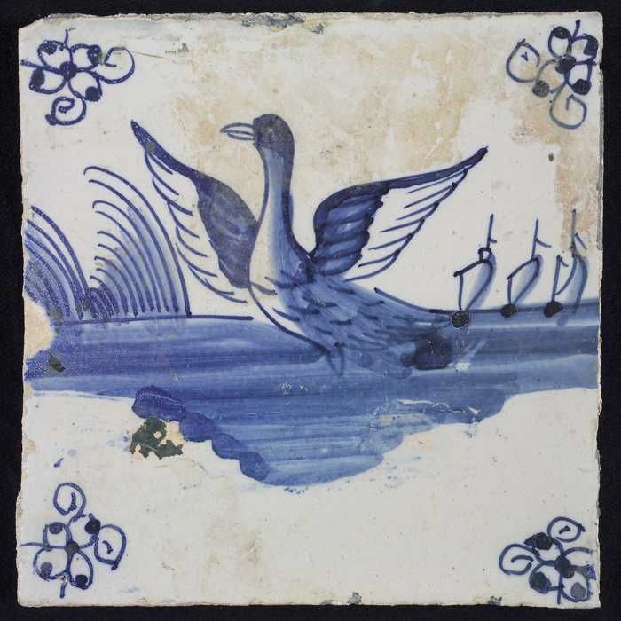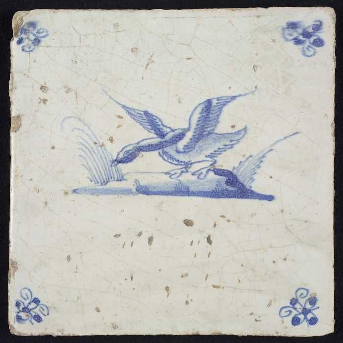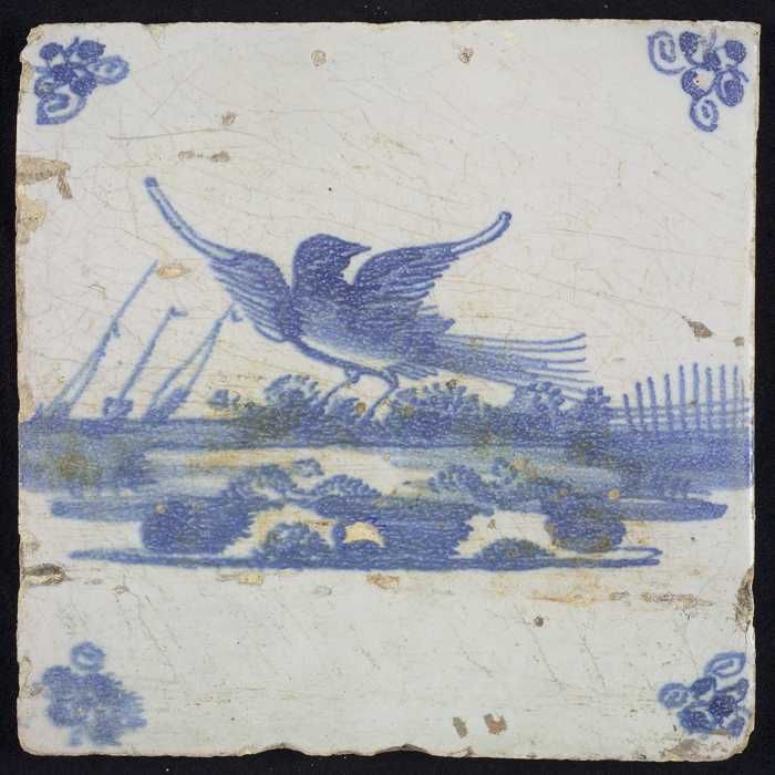 Dierentegel, opvliegende vogel, schepen, hoekmotief ...