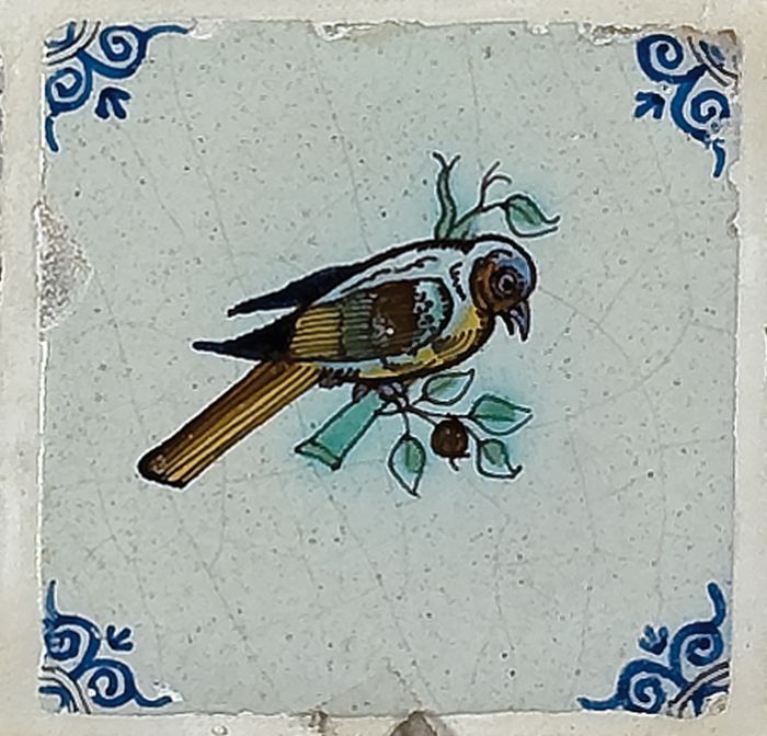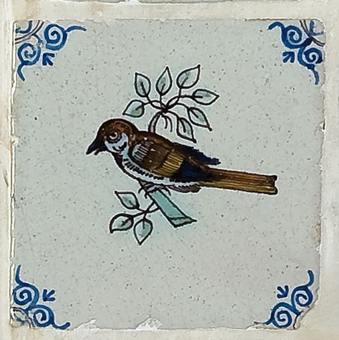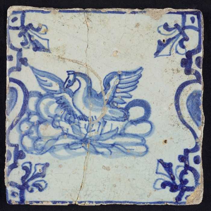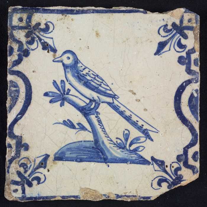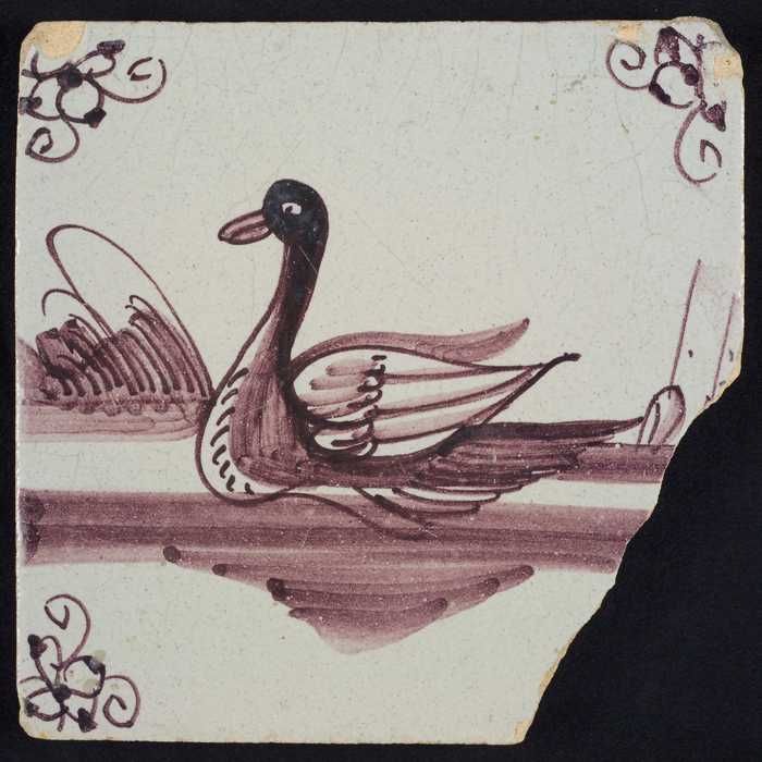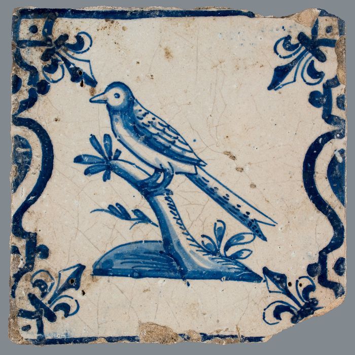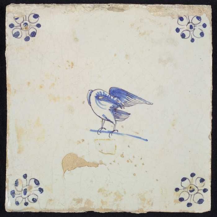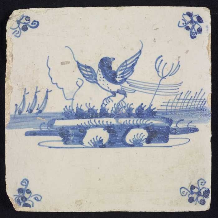 Dierentegel, opvliegende vogel, schepen, hoekmotief ...
