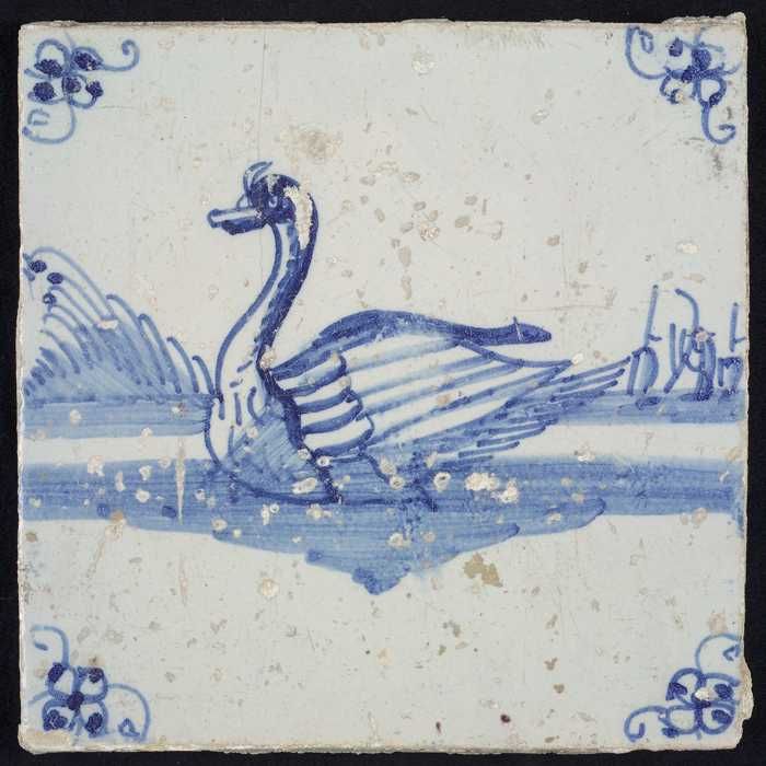 Dierentegel, zwaan, doorlopend water, hoekmotief spin
