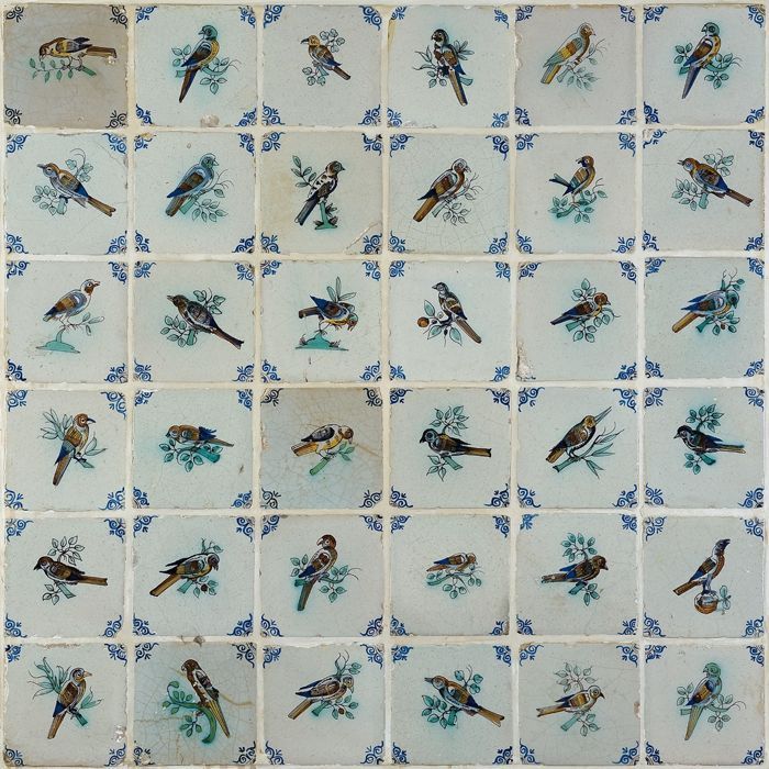 Dierentegel, in tegelveld van 36 stuks, zes hoog en ...