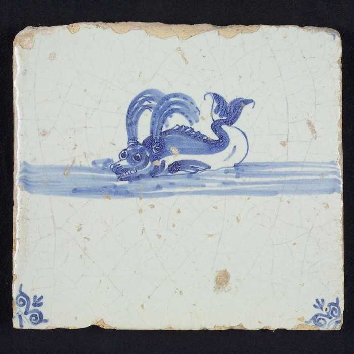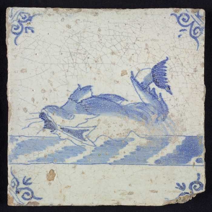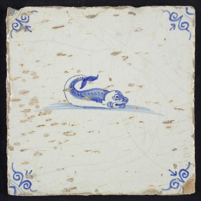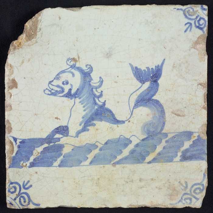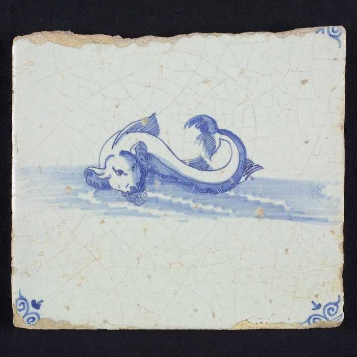 Dierentegel, water spuitende dolfijn, hoekmotief oss...