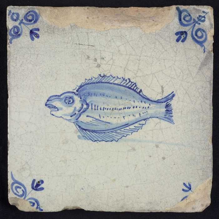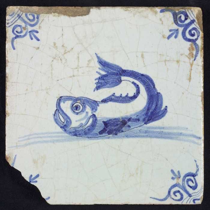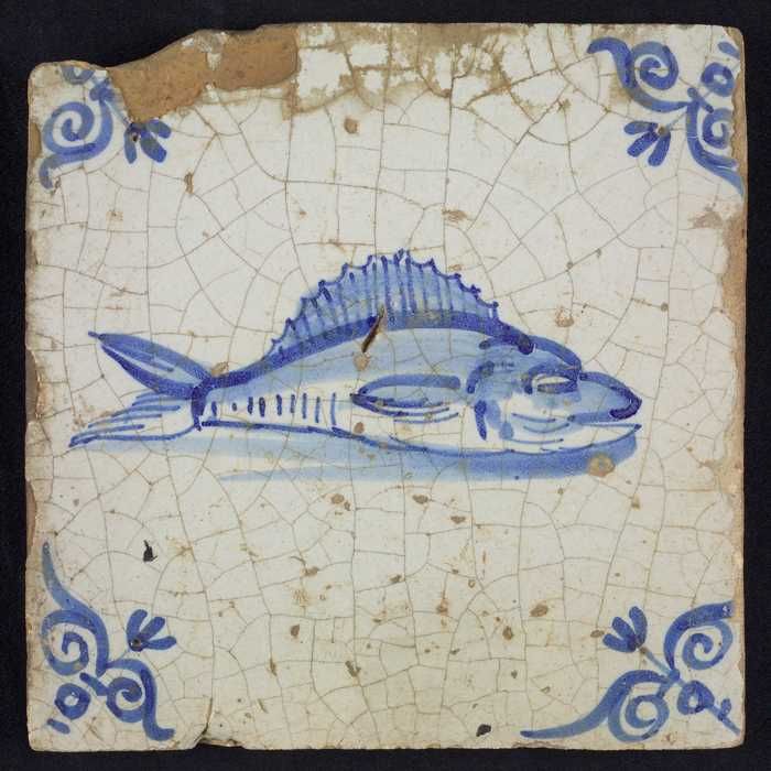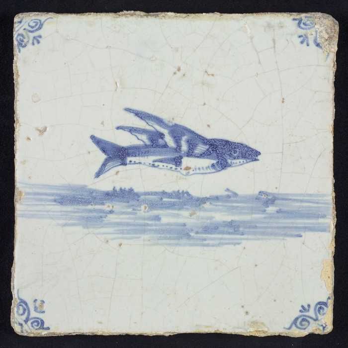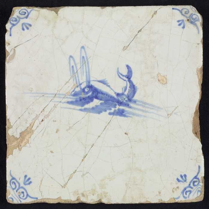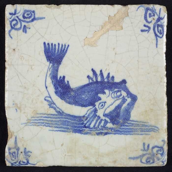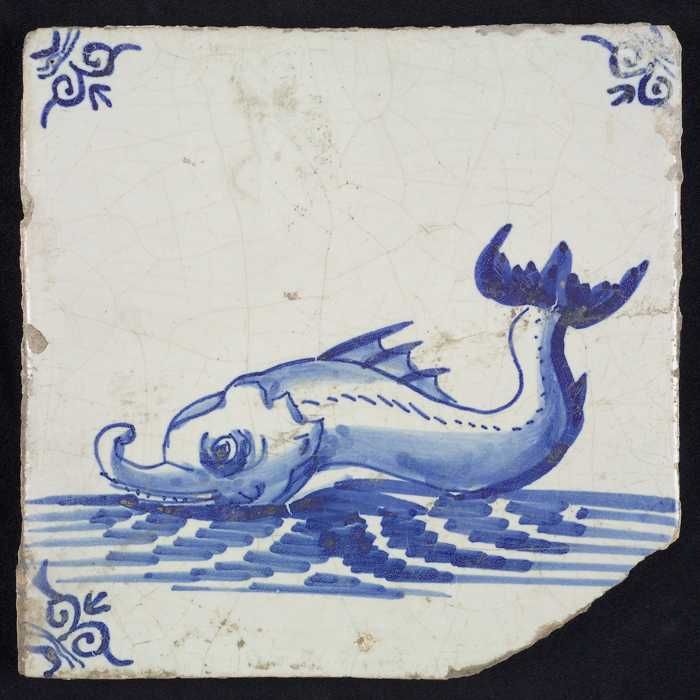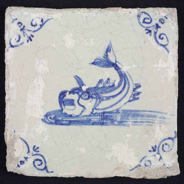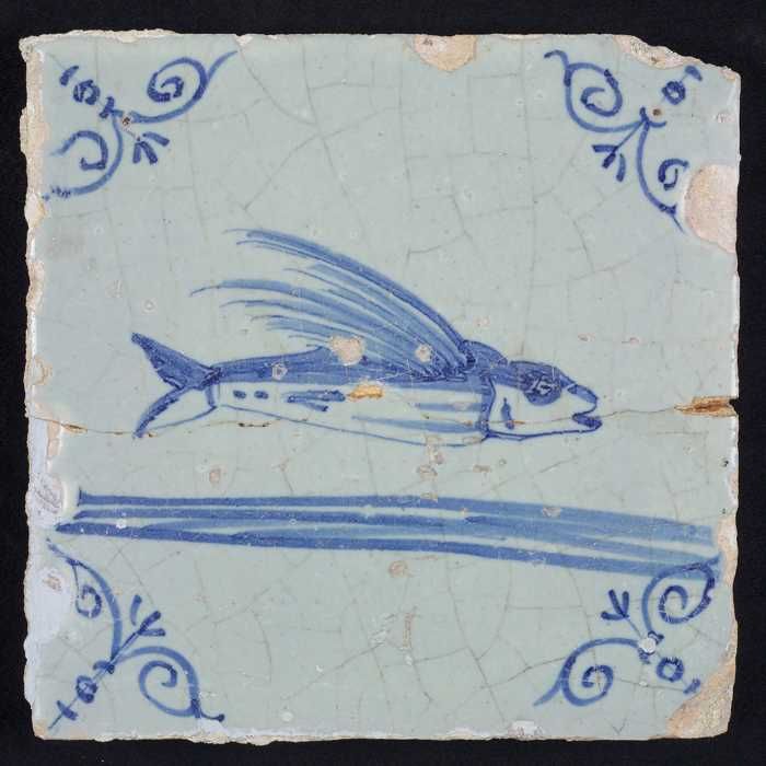 Dierentegel, vliegende vis, hoekmotief gesteelde oss...