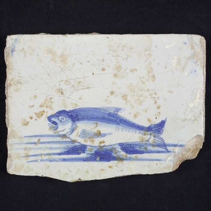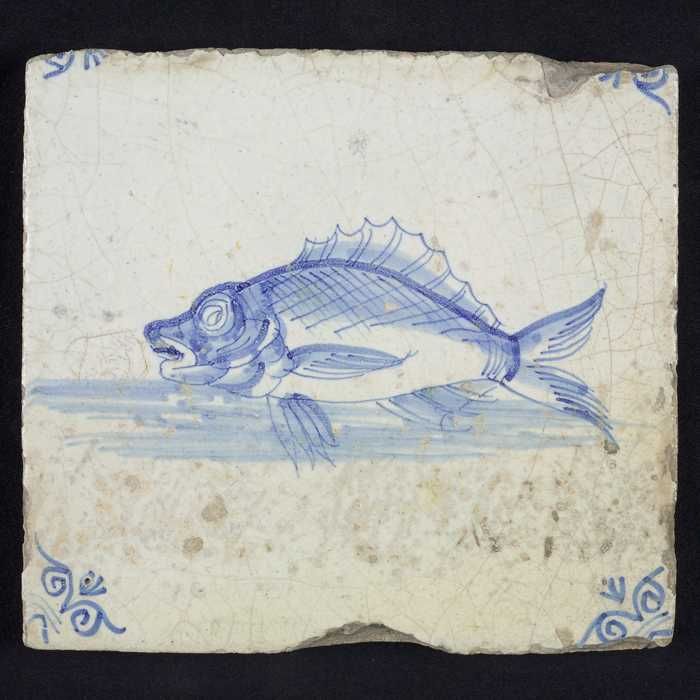 Dierentegel, vis in water, hoekmotief gesteelde osse...