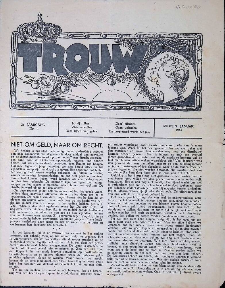 Trouw, 2e jaargang, no 1, midden januari 1944