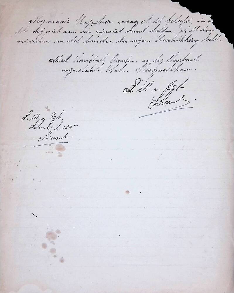 Brief van L.W. van Eijk met verzoek voor een rijwiel
