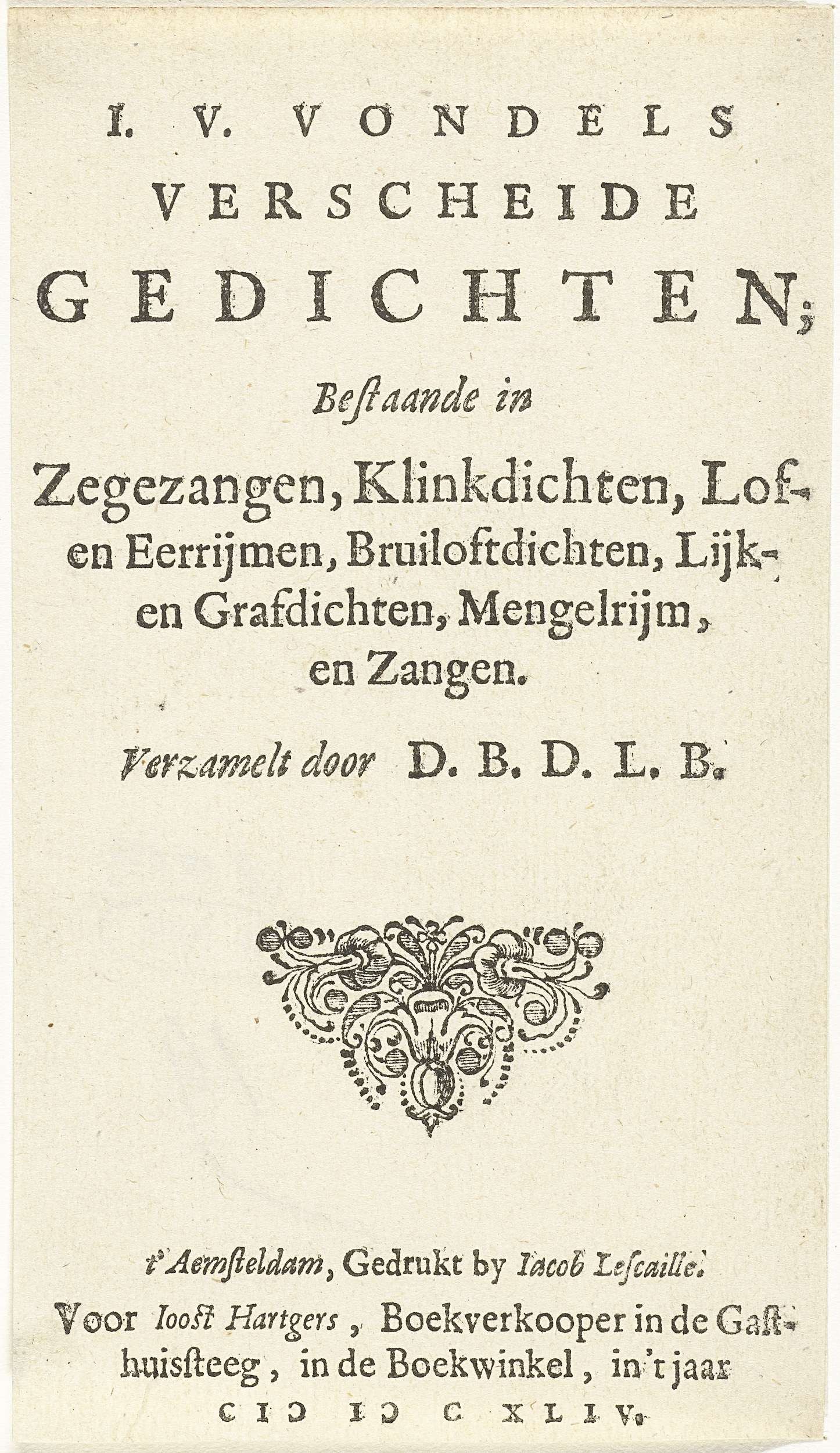 Titelpagina voor: Vande ghedenkwaerdige geschiedenis...