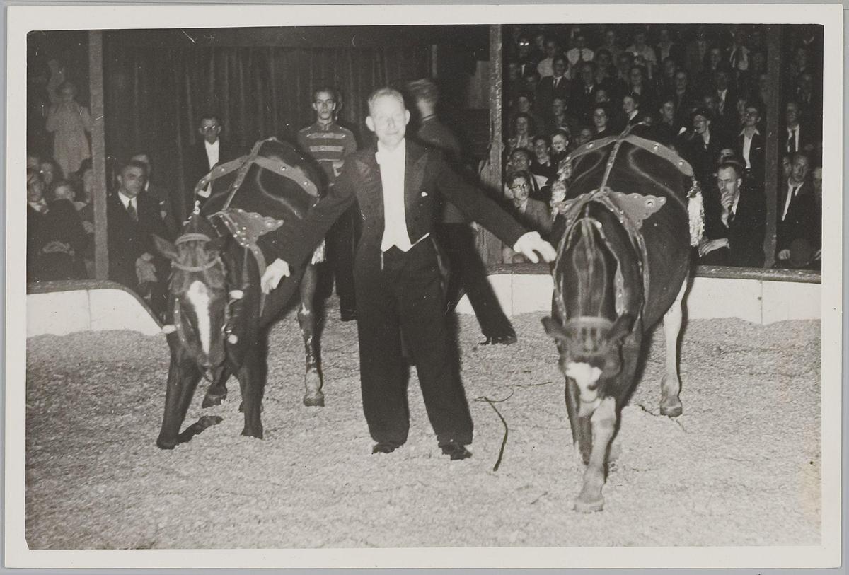 Circus Sarrasani, ong. 1930. Midden: kapelmeester Ce...