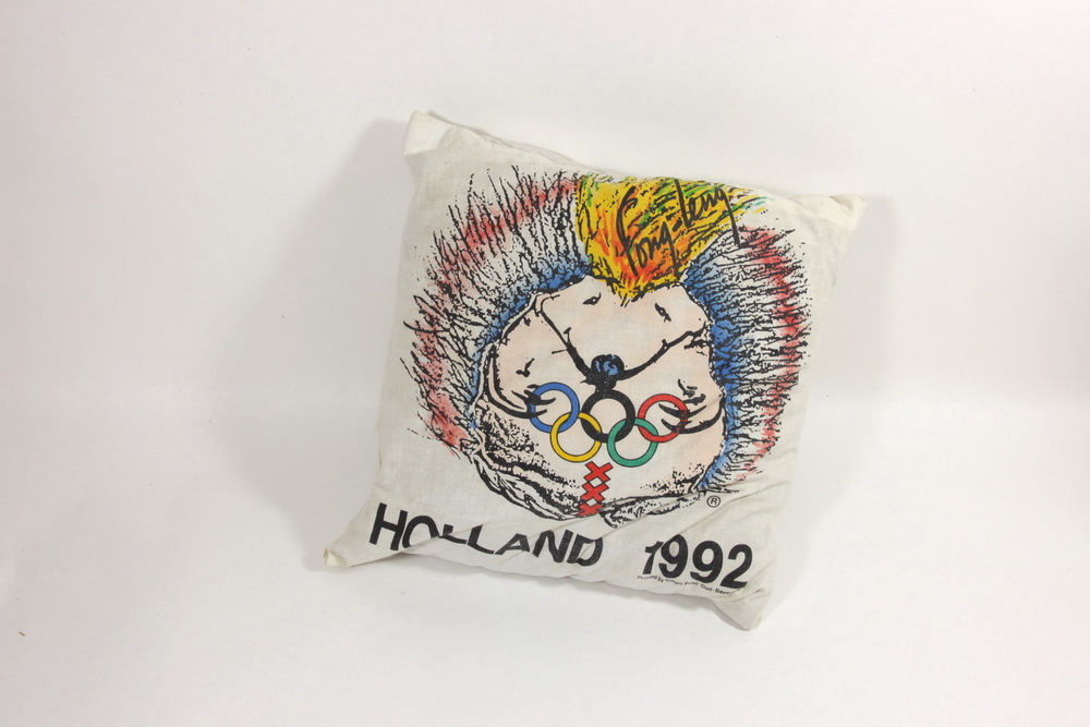 Emaille wit tekstbord “OLYMPISCHE SPELEN, AMSTERDAM ...