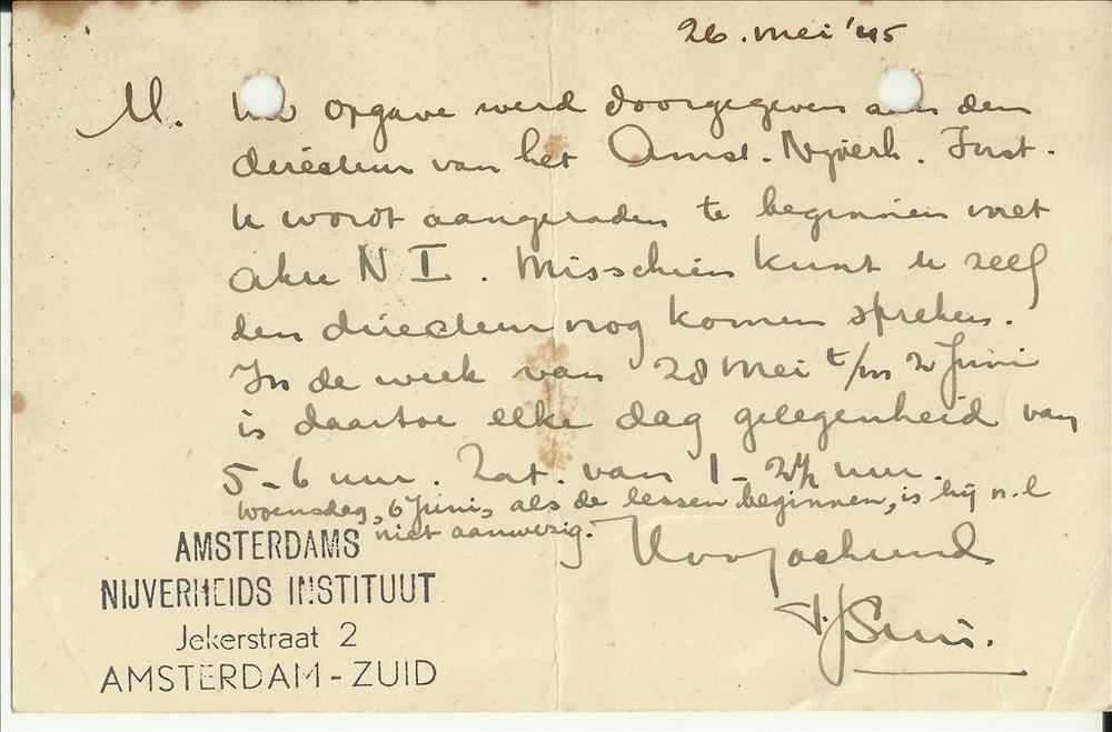 het Amsterdams Nijverheids Instituut - 26 mei 1945, ...