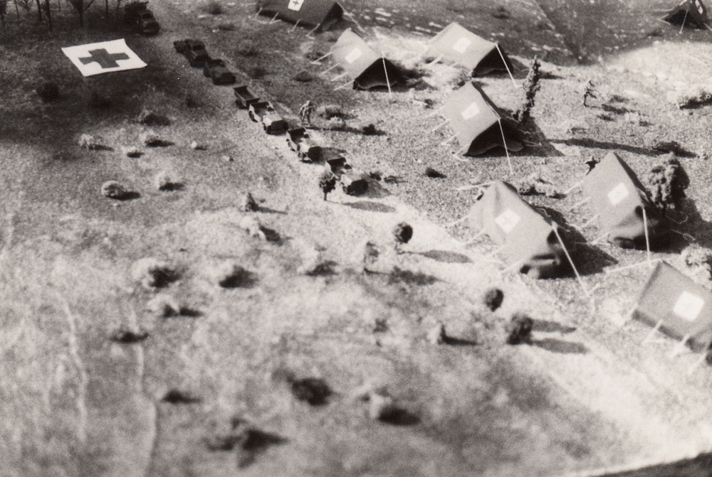 Foto's van een maquette van het veldhospitaal Mulder...