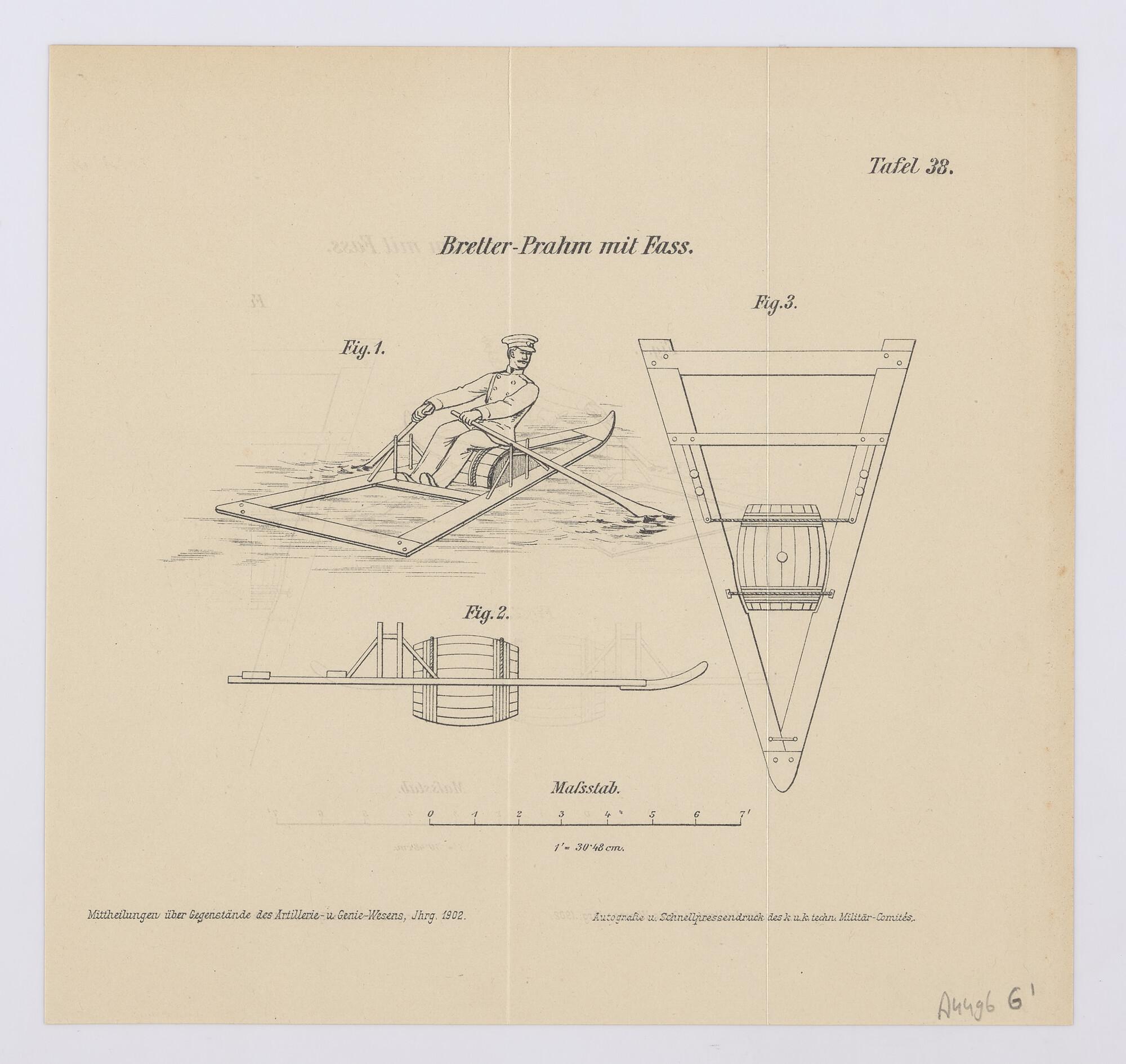 Constructietekening van een roeiboot met een ton als...