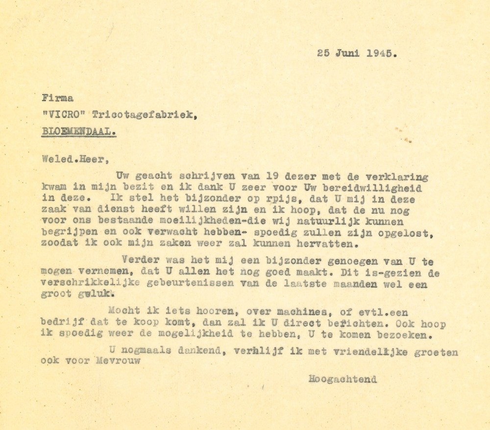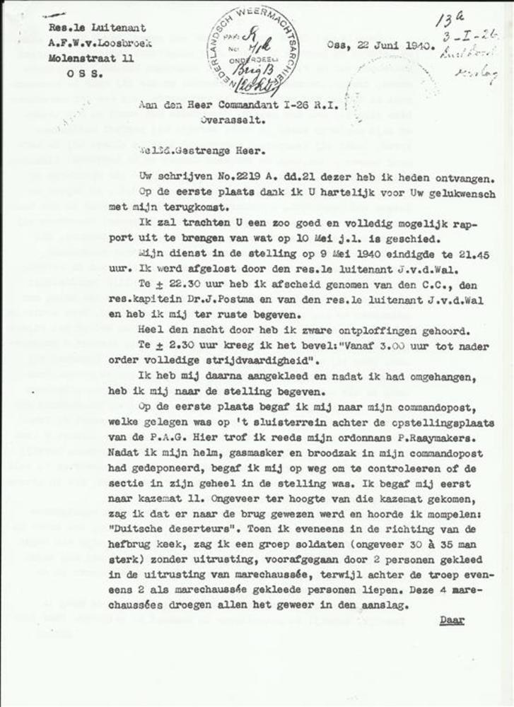 Brief van de res. 1e Luitenant A.F.W. van Loosbroek ...