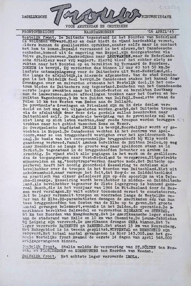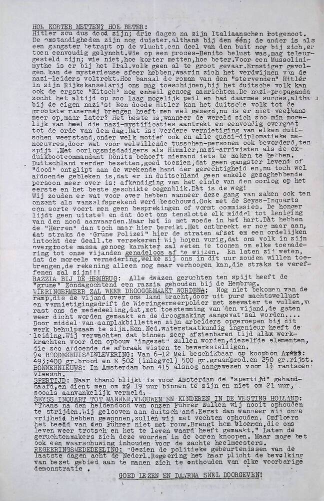 V N Nieuws, Speciaal Bulletin, No. 121, 3 Mei 1945