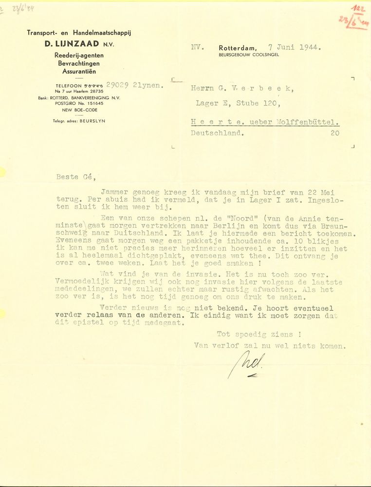 Brief van Nel in Rotterdam aan Gé Verbeek in Watenst...