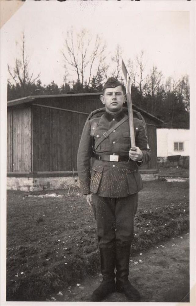 Foto van een lid van de Reichs Arbeids Dienst (RAD).