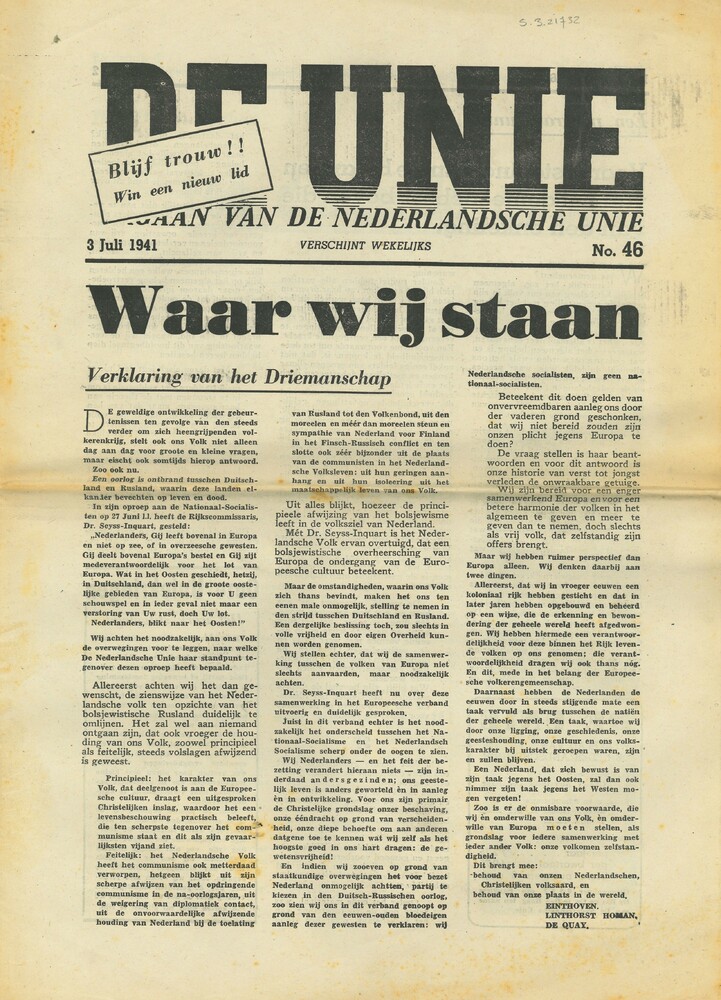 De Unie. 1ste jaargang No 46. 3 juli 1941