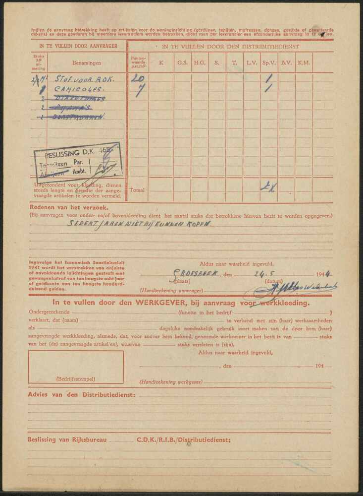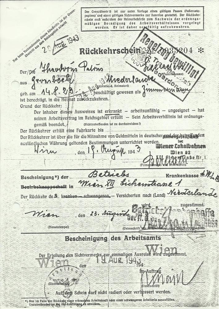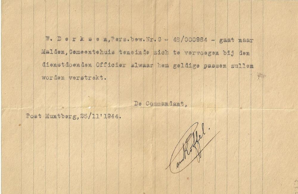 W. Derksen toestemming om naar Malden te gaan