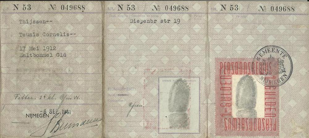 Persoonsbewijs op naam van Teunis Cornelis Thijssen