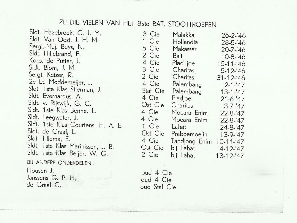 Ned. Indië, Tijgerbataljon: Maart1948 - begrafenis