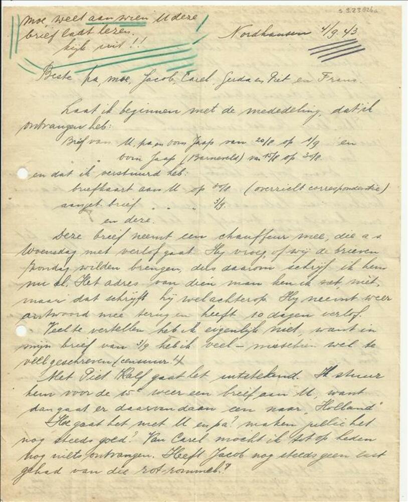 Correspondentie tussen Piet van Haarlem en Dick Snij...